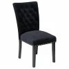 Bestow elegance with the Duchess Dining Chair. Chic and luxurious, Duchess features a stylish curvy form, richly tufted button back, dense foam padding, fine fabric upholstery, and wood legs topped with non-marking foot caps. Resonate grace and charm with a dining chair perfect for the modern home.