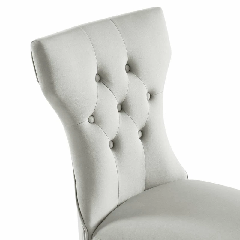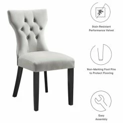 Graceful curves whisper elegance from every position on the Silhouette Dining Chairs – Set of 2. A softly tapered back and rounded hardwood legs lend distinguished support to this hourglass-shaped chair upholstered in stain-resistant performance velvet fabric. Dense foam padding and a sinuous spring support system grant a premium seating experience. Invite your way into the lap of luxury at every gathering.
