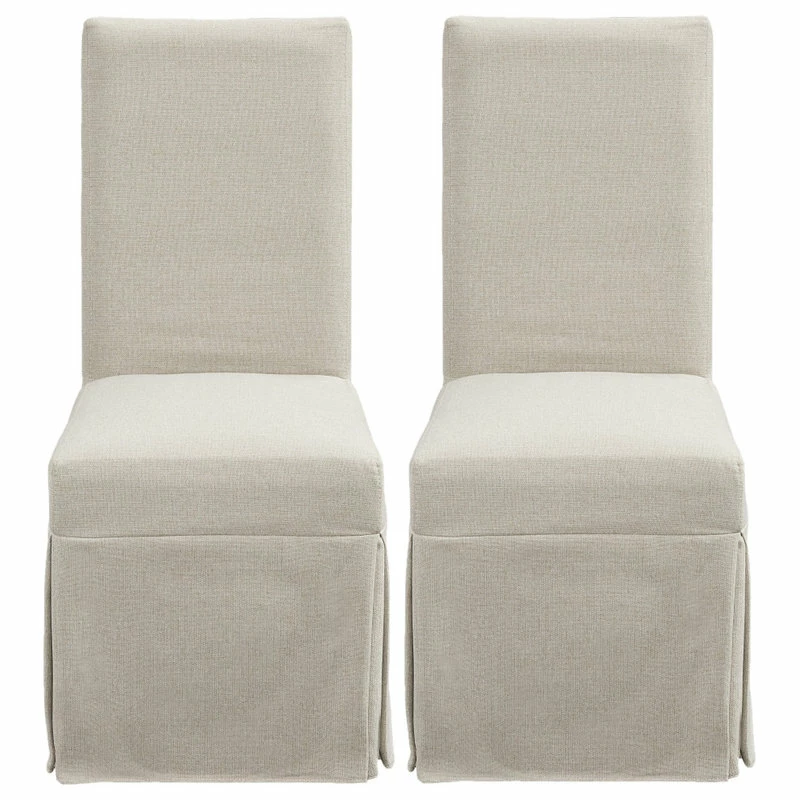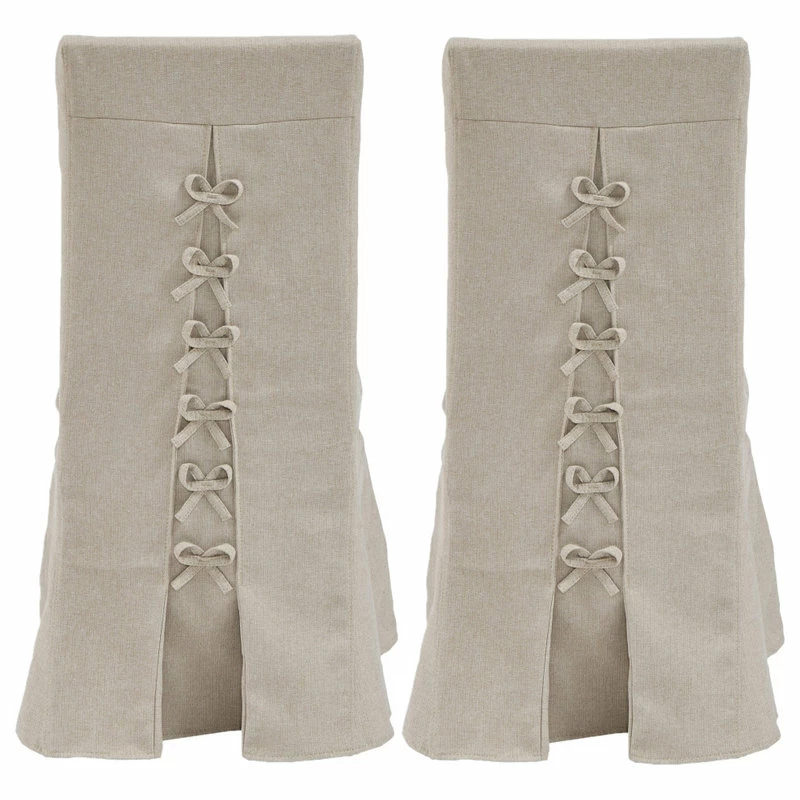 Standing tall and elegant with its high back, the Muse Upholstered Chair bring luxury to your dining space. The chairs are made from solid rubberwood, polyester fabric and topped with a off-white linen color cover with lace detailing on the back. With sophisticated design, the Muse Upholstered Chair uses comfortable elegance to help you and your guests feel right at home.