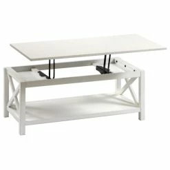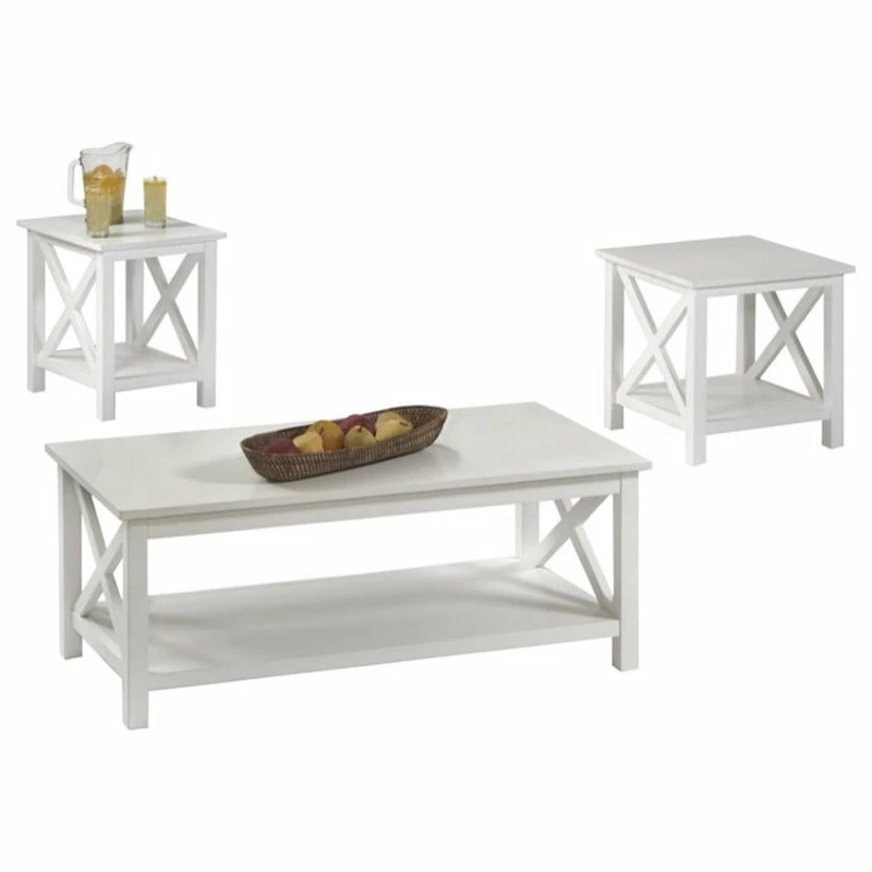 Unique new concept in 3-pack tables for a fresh addition to room packages. Large versatile cocktails feature a full lift-top function for proper dining or work surface heights. End table is 20″ square for use beside sofa and smaller chairside table is scaled for us in package or separately. All pieces have crisscross design on sides and feature full shelves for additional storage areas. 44” x 22” cocktail table has full lift-top function with storage beneath. 20” x 20” x 20” tall lamp table and 20” x 16” x 20” tall chairside table.