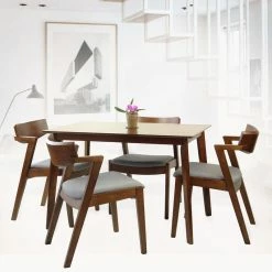 For a dinner with your family or a gathering of guests, you’ll certainly love the beauty and convenience of this 4 piece Tracy armchairs set. Its eye-catching design with a sophisticated elements will never go out of style. Fabric seat offers comfort for long dinnertime conversations. Simply elegant armchairs bring comfortable seating to the table. The armchair is crafted from solid hardwoods in rich medium brown finish. This chair will add a superlative look to your dining room. Stylish, beautiful and perfect for any contemporary or modern style home decor. Matching dining table is sold separately. Create a warm, comfortable breakfast nook or enclosed patio dining area with this incredible furniture. If you want to make your home cozy and beautiful – our family owned company is here for you. Having any issues with your order? Please feel free to contact us and we will do our best to satisfy your needs. We guarantee all questions will be solved very quickly.