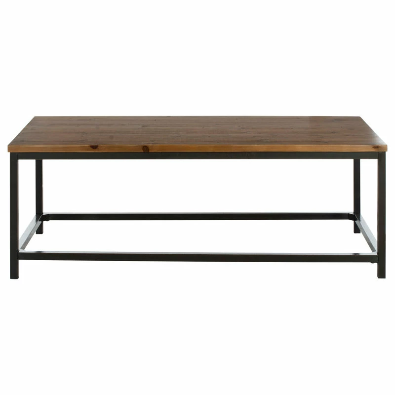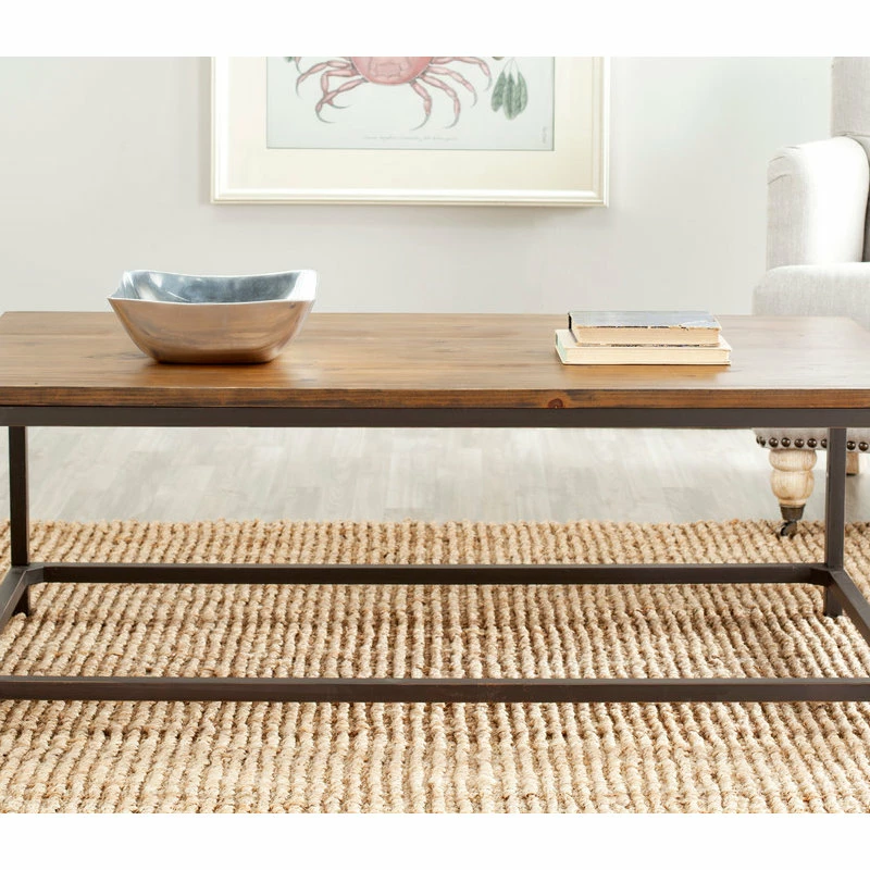 Mix the transitional Alec coffee table with other periods and styles for an eclectic, curated look. Inspired by the industrial furniture trend, its fir wood in medium oak finish is the perfect counterpoint to dark walnut-toned metal legs and stretchers. Crafted by Safavieh, this coffee table is destined to become a future classic.