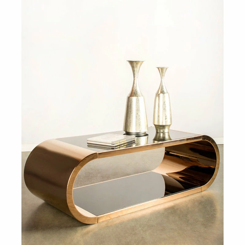 Who says artwork has to be confined to the walls? With the Pia Coffee Table, you can bring artistic design to the forefront of your living room and instantly update your space. The black tinted glass protects the stainless steel, while also providing a contrasting element to the rose gold. Featuring smooth lines and a minimalist geometric form, the Pia Coffee Table brings an effortlessly cool touch to your modern living area.