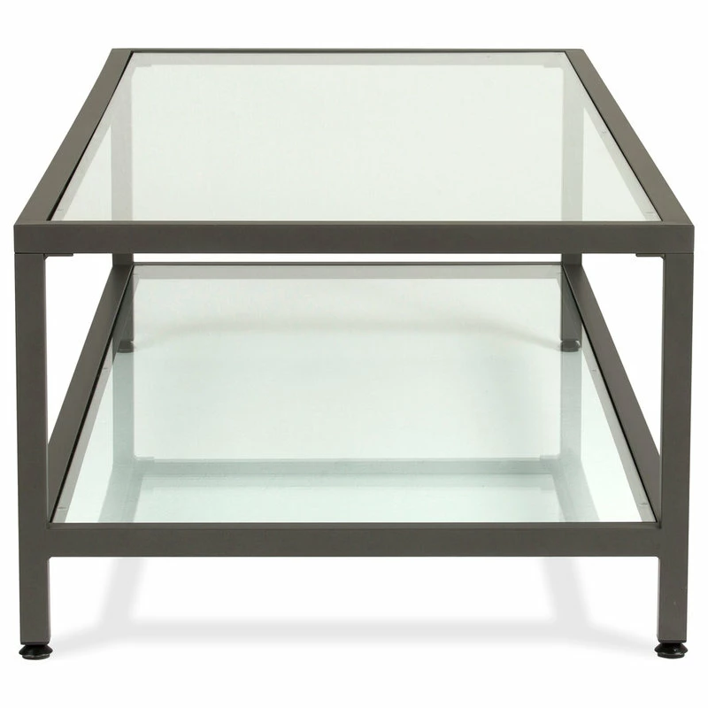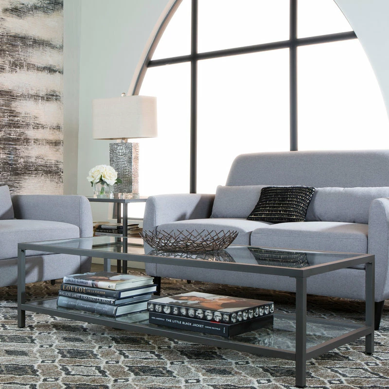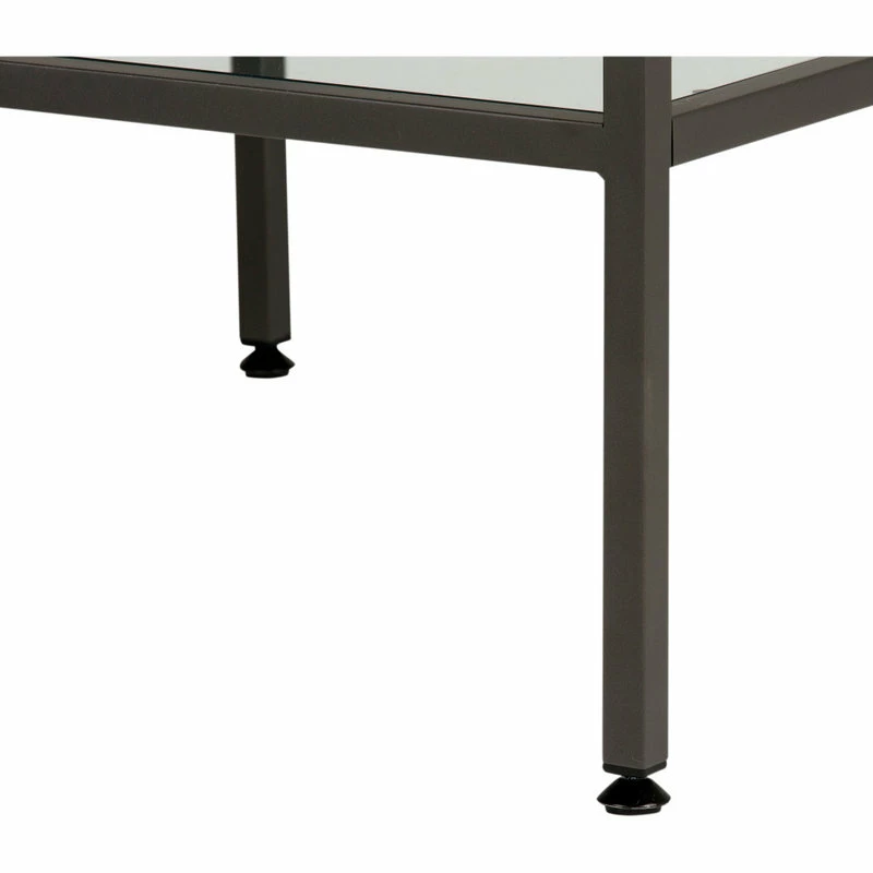 The Camber Collection by Studio Designs Home offers occasional tables with a simple, modern design that will complete your living room or entryway. These tables combine a stylish slate gray metal frame with durable 8 mm clear tempered glass. The simple lines and neutral colors easily complement any room. The multiple tiers provide plenty of display space for photos, collectibles or everyday necessities. Floor Levelers are included for stability on any flooring surface.