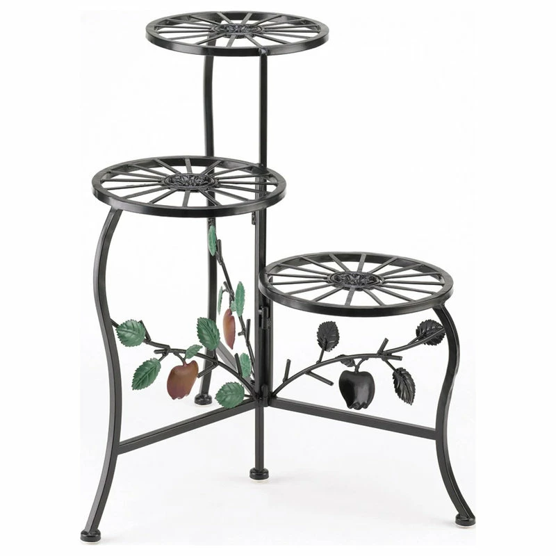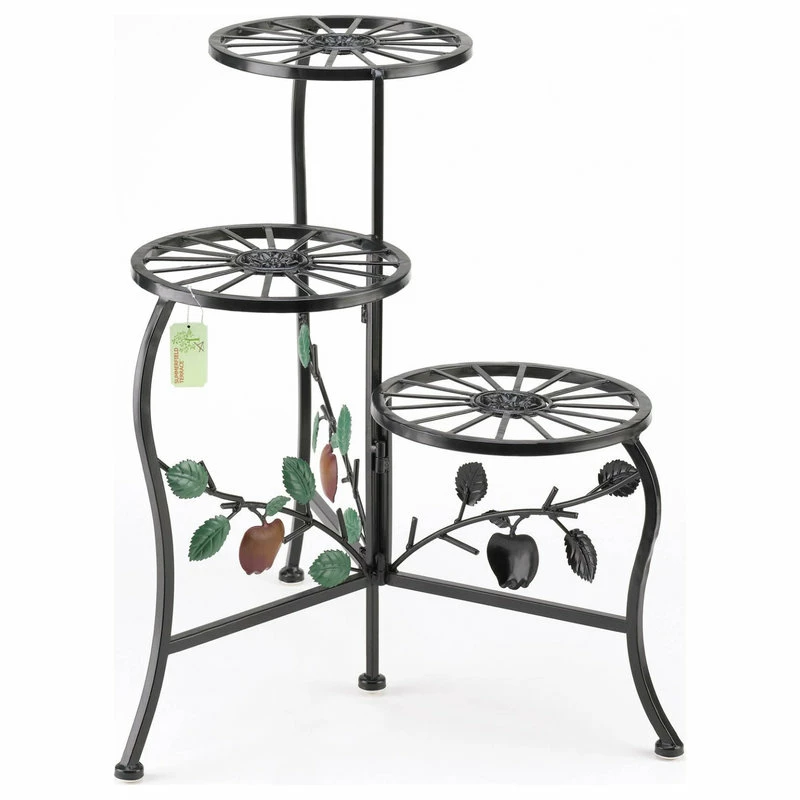 COUNTRY APPLE PLANT STANDPut your favorite plants on proud display with this country-style stand! An apple-branch motif adds charm and color to a graceful triple-tier gate design.