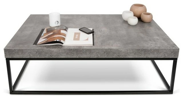 The large Petra Coffee Table from TemaHome features a contemporary and sophisticated design. Its geometric silhouette and concrete look tabletop paired with black metal legs offer a creative and refined aesthetic that is sure to complement any space. Pair it with the matching accent table to complete the look. Order this concrete top coffee table today.