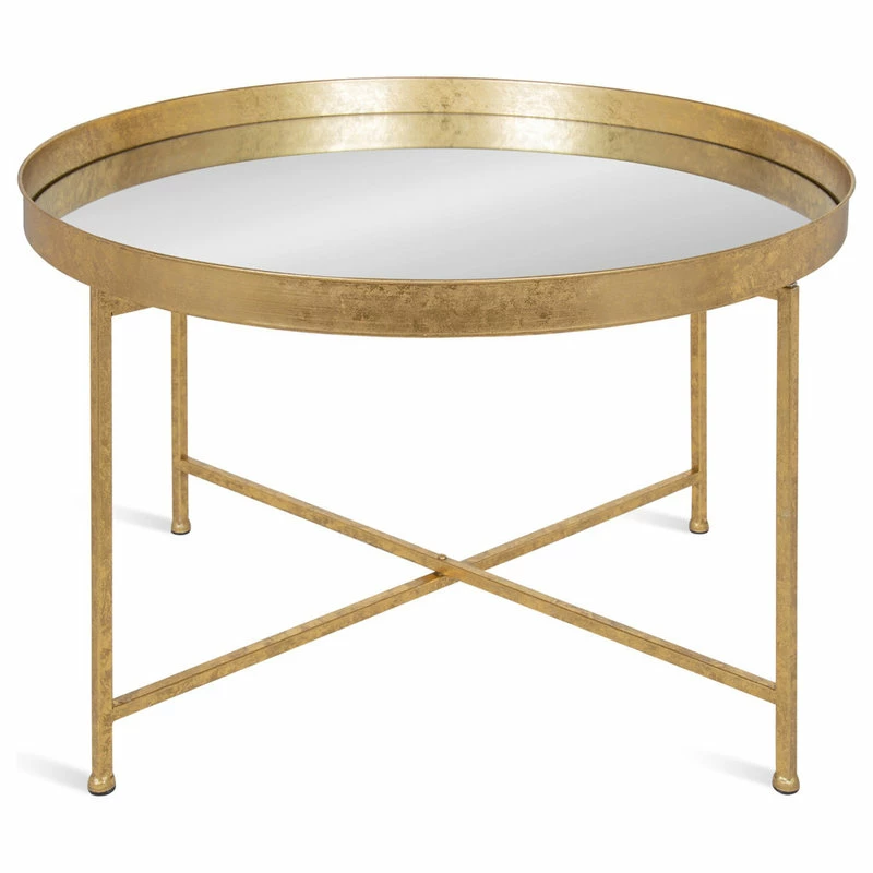 The Celia collection brings a pop of glamour to your home decor! This metal pop up coffee table comes with a large detachable tray with a mirror surface and a foldable base. The round size is perfect for use in your sitting room or living room in front of your sofa. Use it along with the Celia foldable accent table for a lovely stair-step look.
