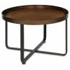 - This table stands 19 inches high with an 28-inch diameter top that’s easily removable as it adheres securely to the legs with magnets and once the tray is removed, the legs fold up making it very portable and easy to tuck away