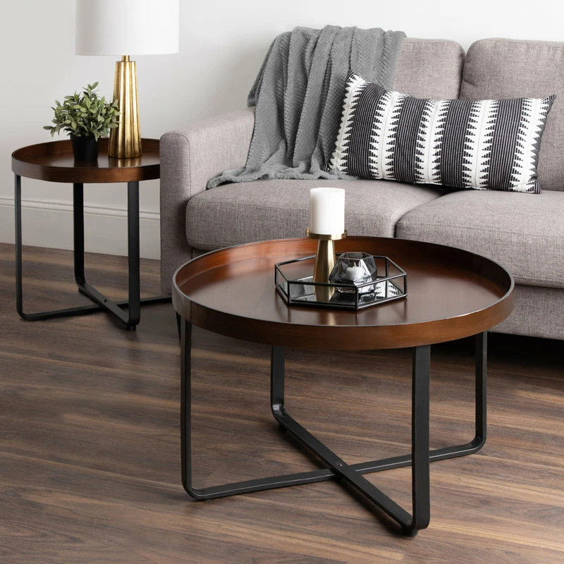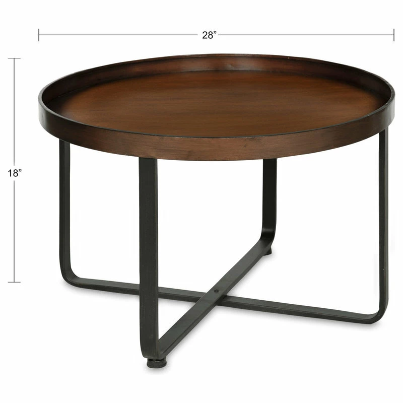 Decorate your home in sleek contemporary modern style with this two-toned metal coffee table. The round size is perfect for use in your sitting room or living room in front of your sofa. Because it’s not too big, set it to the side of a room for a perfect area to display your collection of potted succulents. Its constructed of metal with a brushed finish and is super easy to assemble with all hardware included. It stands approximately 18-inches high and has a diameter of 28 inches.