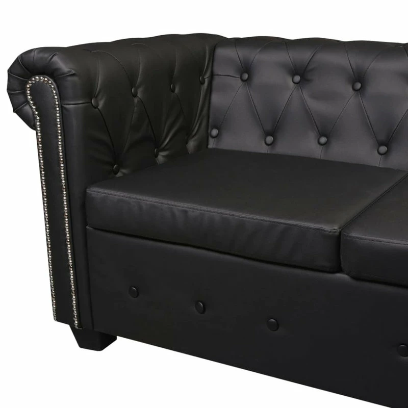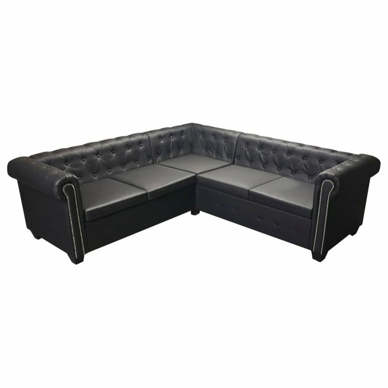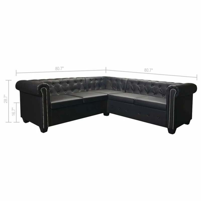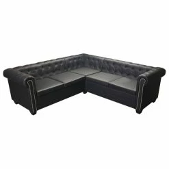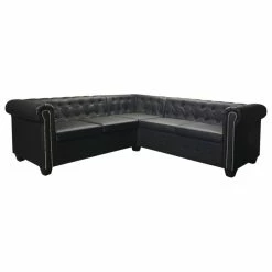 This Chesterfield corner sofa is the perfect blend of comfort and sophistication and will make a great addition to any home or office. This 5-seater sofa, with its tufted and studded detailing and gracefully curved arms, will add a touch of luxury, class and style to any interior. The thickly padded seat is highly comfortable, while the elegant structure is sturdy and durable. The quality faux leather upholstery is easy to clean and hard-wearing. Assembly is very easy.