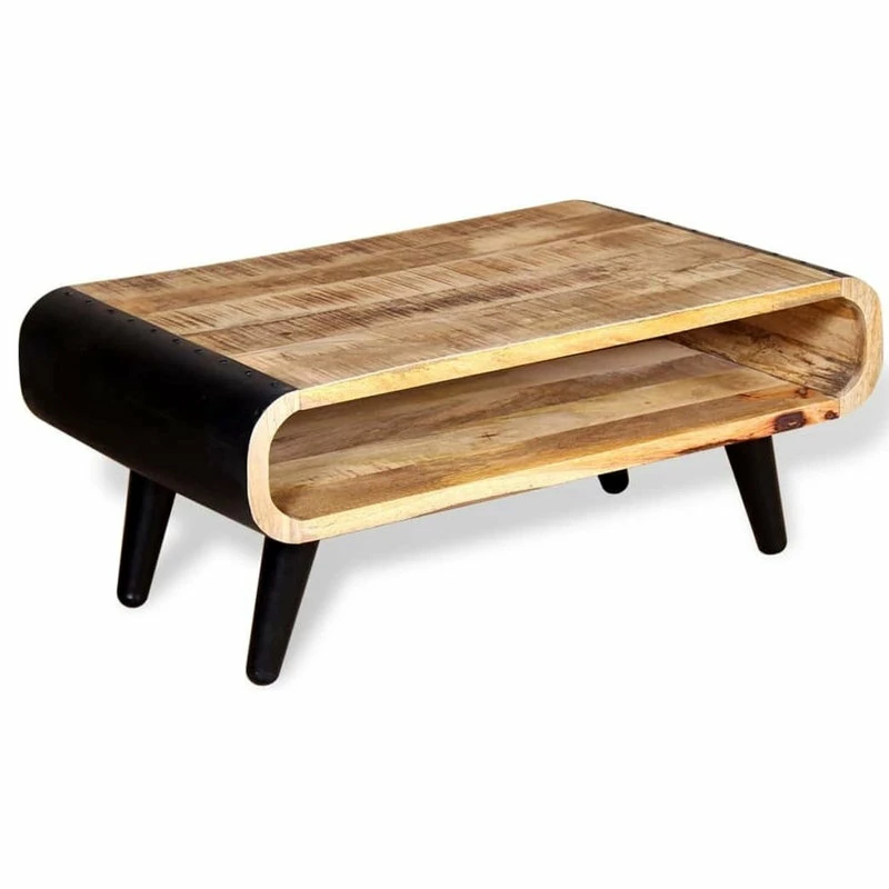 This industrial-style wooden coffee table exudes a vintage charm and will make a timeless addition to your home. Its solid tabletop provides a stable and secure surface on which you can place drinks, fruit baskets or decorative items. The open compartment offers extra storage space. The coffee table can also be used as a couch table, living room table, side table, end table, side cabinet or low board. The coffee table is handmade of rough mango wood which is solid, stable, durable and beautiful, and the craftsmanship adds to its spectacular retro style. Every step of the process is carried out with the greatest care, be it polishing, painting or lacquering. The craftsmanship and the beautiful wood grains make every piece of furniture unique and slightly different from the next. Important note: colors vary from piece to piece, making each of our coffee tables unique; the delivery is random.