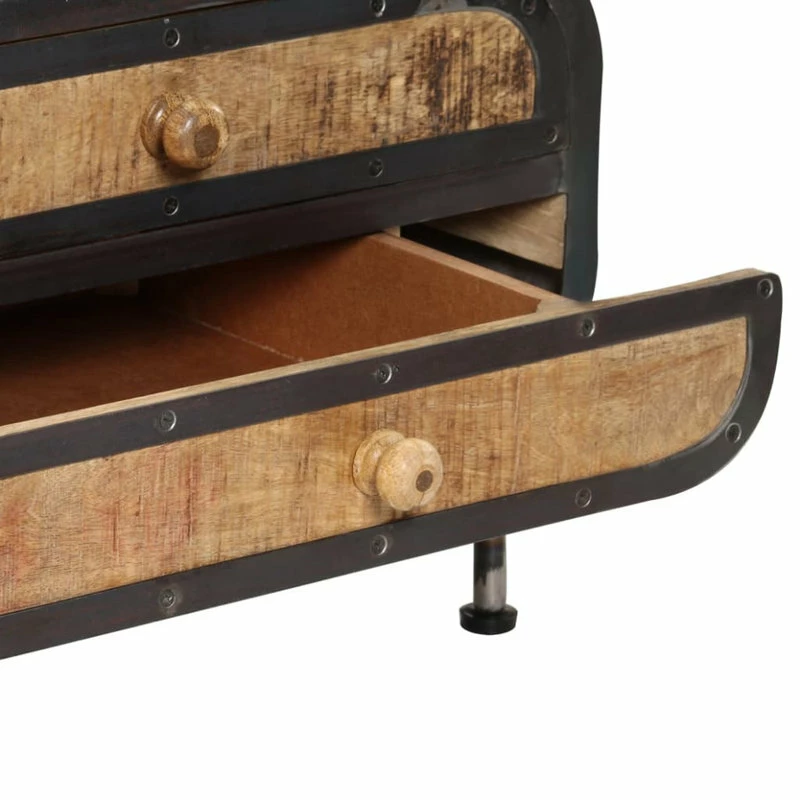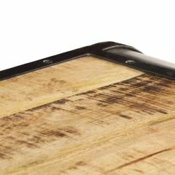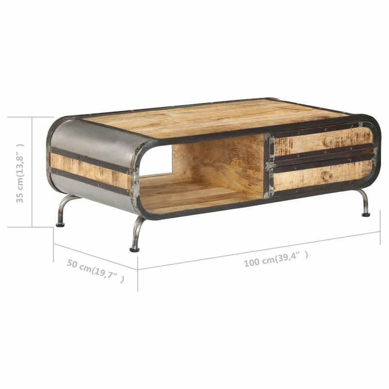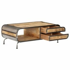 This antique-style coffee table exudes a quaint charm. It will definitely make an eye-catching addition to your interior. The couch table is made of solid mango wood, which is a hardwood with dense grains. Rough mango wood not only has the strength to bear the weight, but also stands the wear and tear of time. Therefore this beautifully-designed wooden coffee table is stable, durable and eye-catching. This side table is fully handmade and the refined wood grains make every piece of furniture distinctive and slightly different from each other. The iron frame adds the table’s industrial style. This living room table features 2 drawers and 1 compartment, providing commodious space for storing your multimedia appliances, books, as well as various other items. Important note: The colors vary from piece to piece, making each piece unique; the delivery is random.