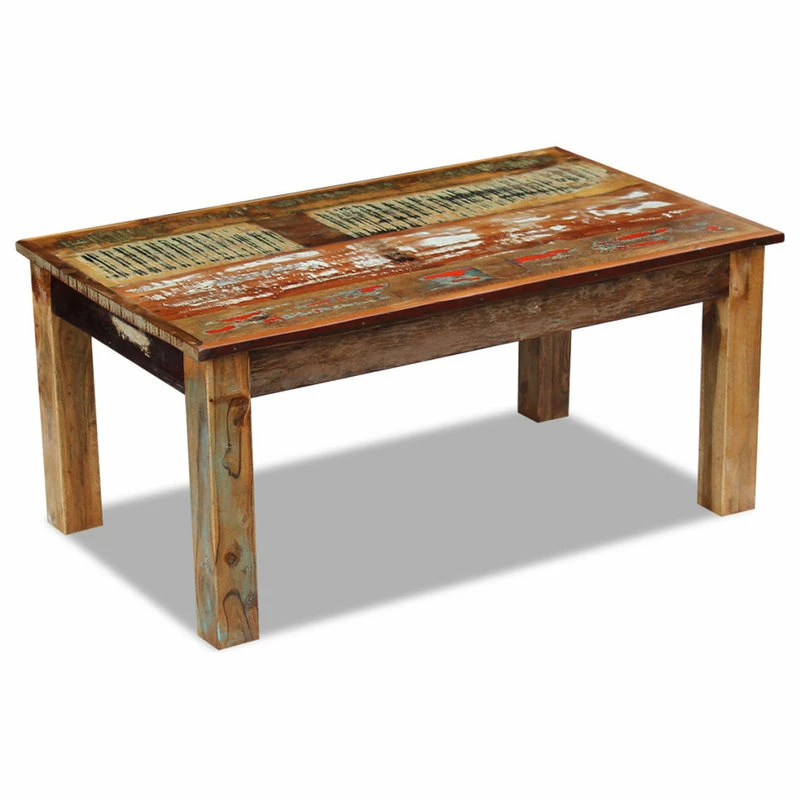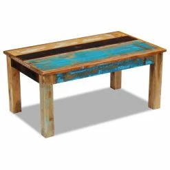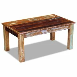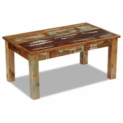 This antique-style wooden coffee table will make a unique addition to your room. Its solid wood construction makes it stable and secure to place drinks, fruit baskets, decorative items, etc. It can also be used as a couch table, a living room table, a side table, an end table, etc. Made of reclaimed wood, this table is solid, durable and beautiful, and has the characteristics of different woods like teak, mango wood, acacia, recycled wood, hard wood, etc. Every piece of this furniture is unique, and slightly different from the next. Signs of wear and visible grain structure give each piece its own history and a unique look. This coffee table is fully handmade. Every step of the process is carried out with the greatest care, be it polishing, painting or lacquering. Important note: colors may vary from piece to piece, making each of our tables unique. The delivery is random.