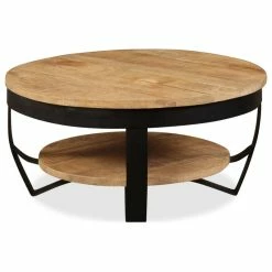 - Material: Solid rough mango wood + powder-coated steel base