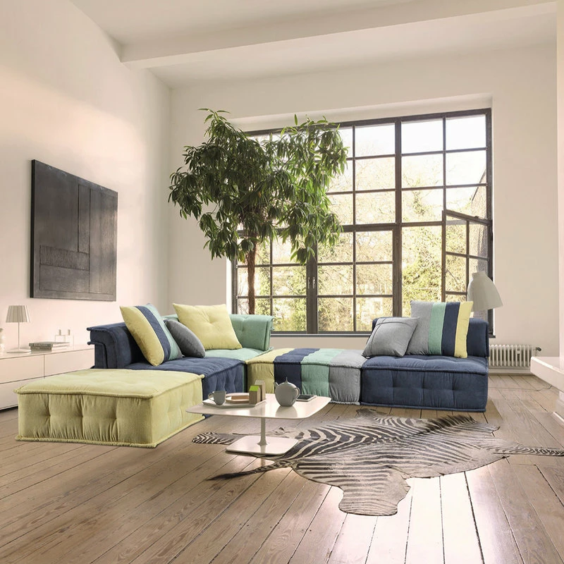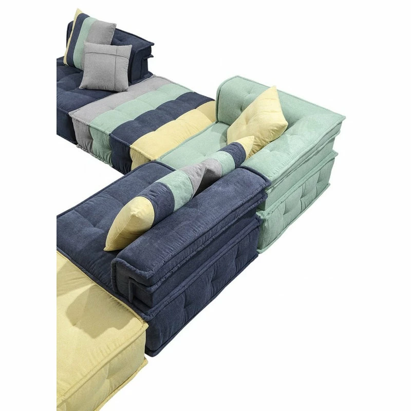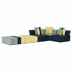 The Dubai Sofa is a modular modern style sectional sofa with an ecclectic twist. The playful color palette of the cotton fabric adds personality to any room. The low profile seating is sure to bring comfort and a sense of well traveled class. This sofa elevates any space from conteporary to farmhouse. This bohemian sofa is sure to be a showstopper.