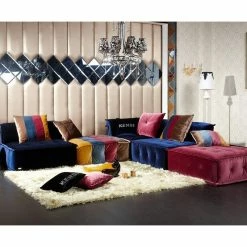 This modern sectional is an eclectic piece that provides an eye catching and inviting appearance. Along with its fun color scheme, it features beautiful tufted upholstery and will provide inspiration to your living space.