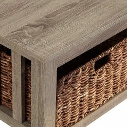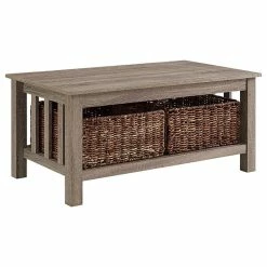 Provide a beautiful centerpiece for your living area, accentuate a hallway, or just create more storage space in any room with this classic and traditional style coffee table. Includes two darling wicker baskets that not only complement the piece, but keeps toys, accessories, and books tidy. Your home will look tidy and trendy with this vast storage coffee table.