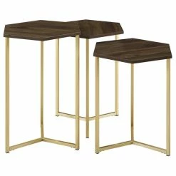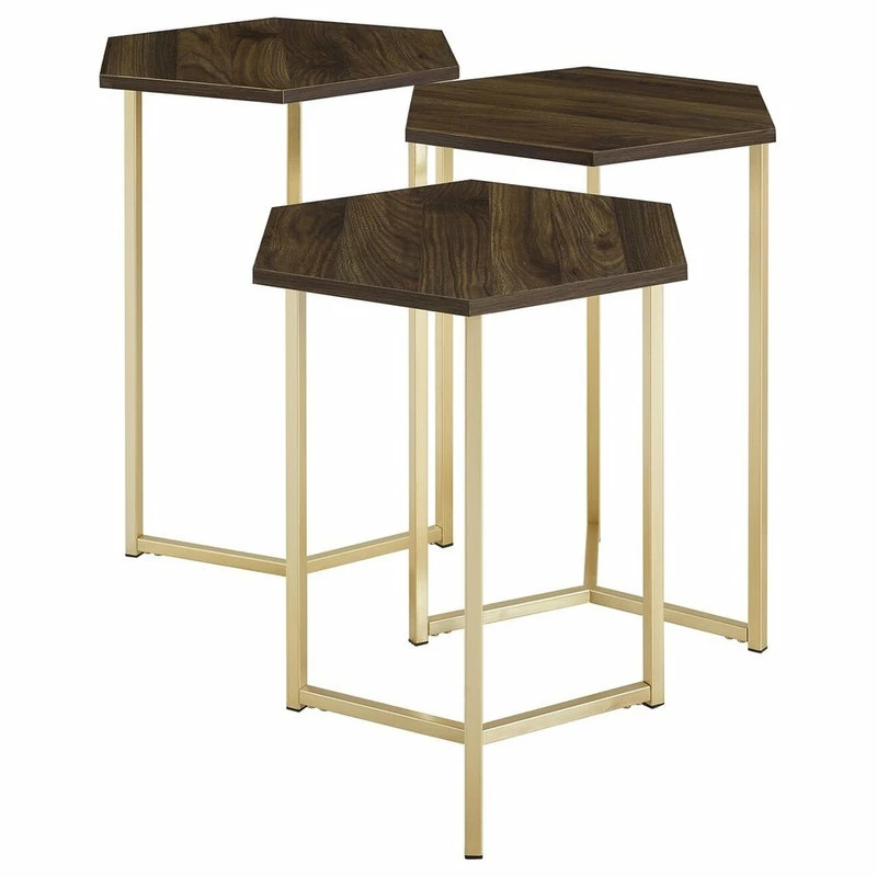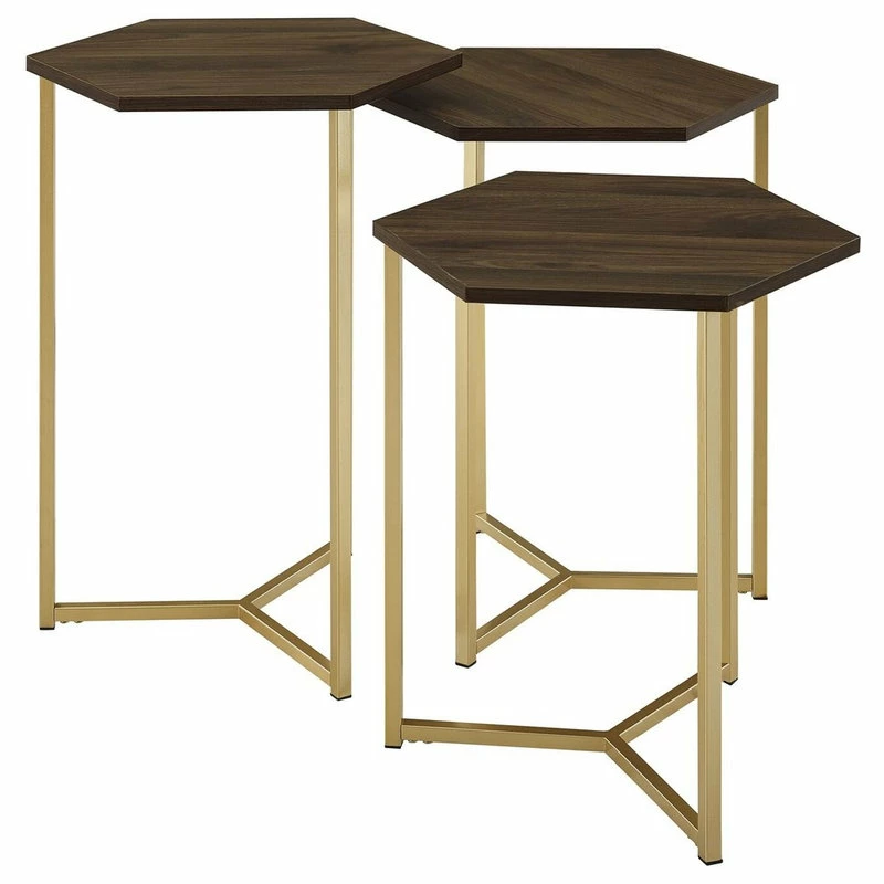 Designed with uniqueness and modern style in mind, this set of nesting tables will make a stunning transitional statement to your home. Their versatility gives you options to choose where you want to place them, making it easy to find a use for each. All are made with hexagon shaped table tops and metal framing for a mixed element appeal. From pairing the three together in your living room for displaying decor on and then when room is needed simply fit them together to save space or spread them out among your home and use one as a side table next a chair, the other a sofa table, and the last as a nightstand in your bedroom.