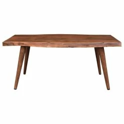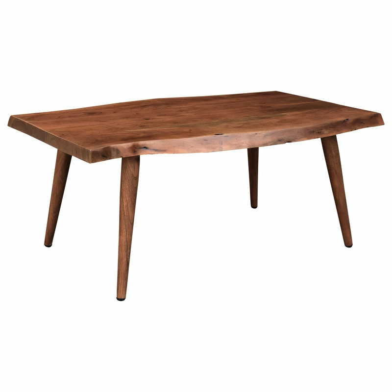 The live edge detailing brings this coffee table to life along with the naturally occurring solid acacia wood details. Each piece is handcrafted and hand-finished, bringing a unique touch to every rustic table. The compact size of this wooden table allows for flexibility of use – in a casual or formal living space, or in a rustic cottage setting. The rich walnut finish is the perfect ending to this beautiful piece.