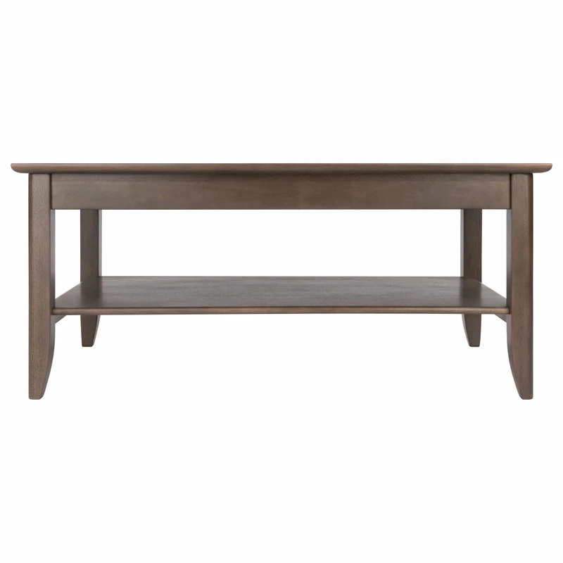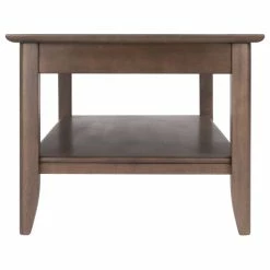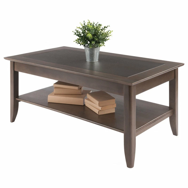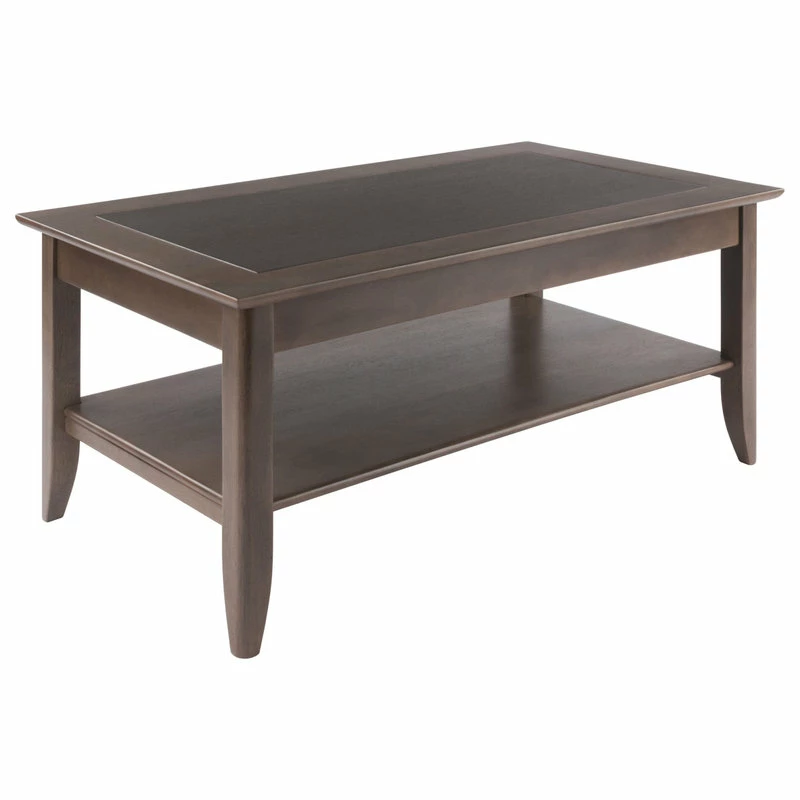 Bring distinction and balance into your home with the Winsome Wood Santino Coffee Table. Crafted in a contemporary oyster gray, and featuring a wood inlay in a darker gray tone that adds depth and distinction all while creating a sense of warmth, together offering a unique centerpiece for your living room. A wide lower shelf is ideal for books, magazines, and stowing remotes and personal electronic devices. Softly-finished edges on the tabletop and tapered legs present a simple and elegant silhouette in any room. The table frame is made of solid wood with the contrasting inlay constructed of composite wood with wood veneer overlay for long-lasting beauty and durability. Coordinate this coffee table with other furnishings from the Winsome Santino collection for a cohesive look throughout your home (each sold separately).