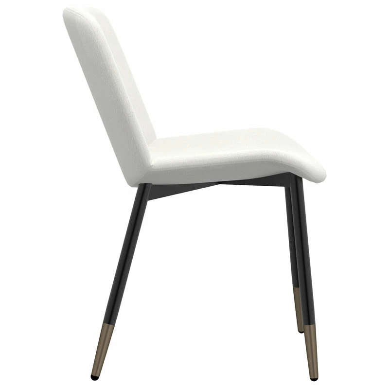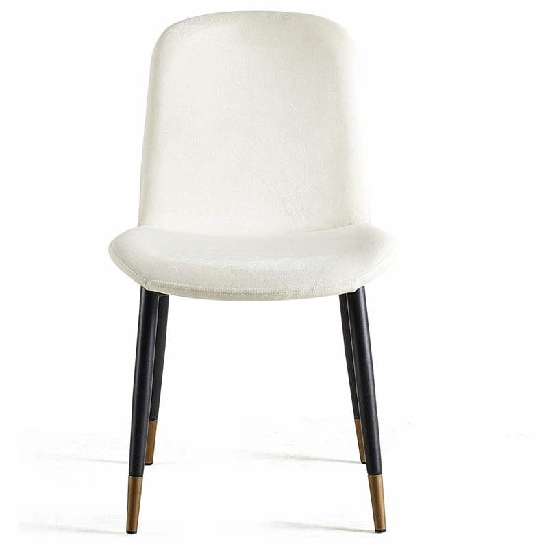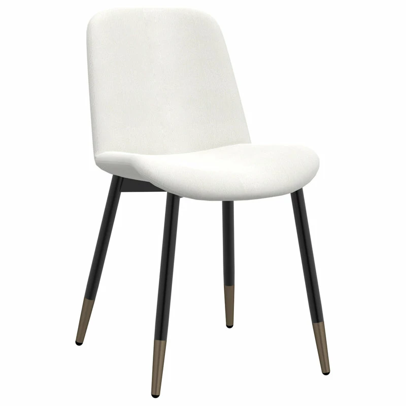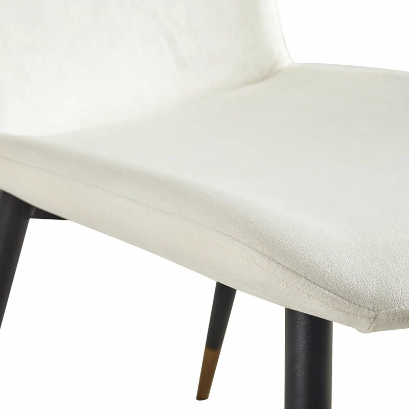 The curved simplicity of this chair is what allows it to stand out as a truly beautiful piece. Soft velvet upholstery, cleanly finished on seat and back sit atop black metal legs with an irresistible gold-dipped detail. Firm cushioning will lends hours of support while enjoying a casual family dinner. Mix and match with a variety of table styles to create the perfect dining atmosphere.
